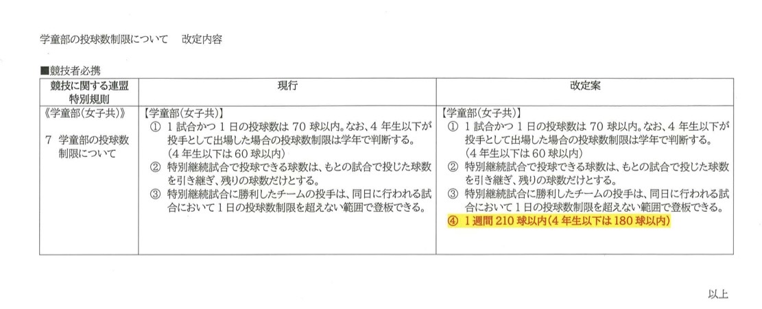 学童野球について投球制限が新たに改定となりました!!